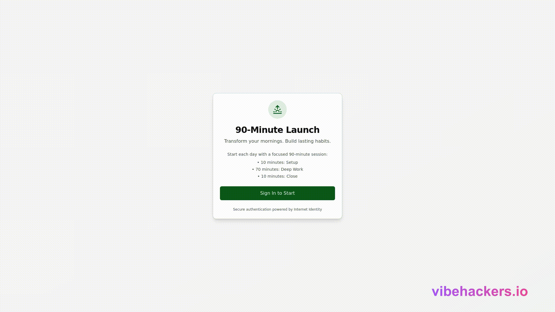 A tool to help you keep the promises you’ve made to yourself. It encourages users to transform their mornings and build lasting habits through a structured 90-minute session that includes setup, deep work, and closing.