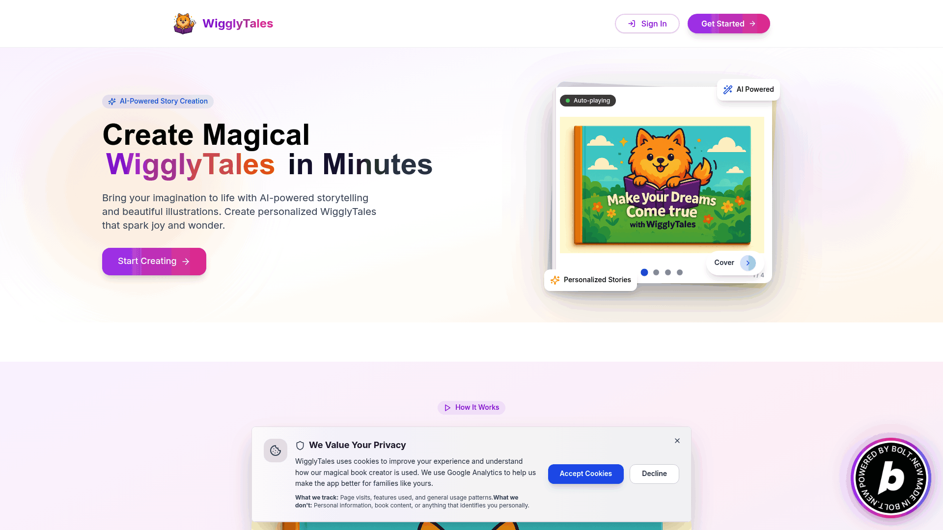 Create Magical WigglyTales in Minutes. Bring your imagination to life with AI-powered storytelling and beautiful illustrations. Create personalized WigglyTales that spark joy and wonder.