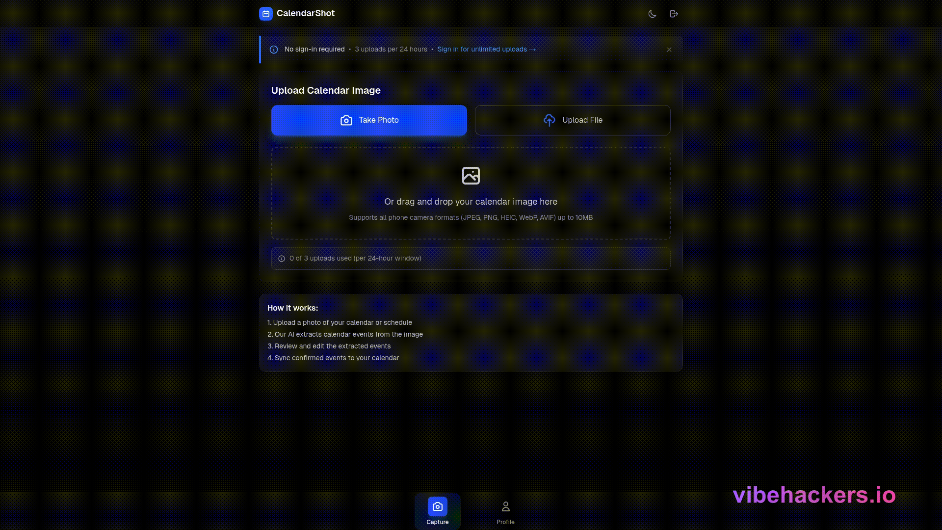Transform photos of schedules into calendar events instantly using AI. CalendarShot allows users to upload images of their calendars or schedules, from which the AI extracts events for easy syncing to Google Calendar.