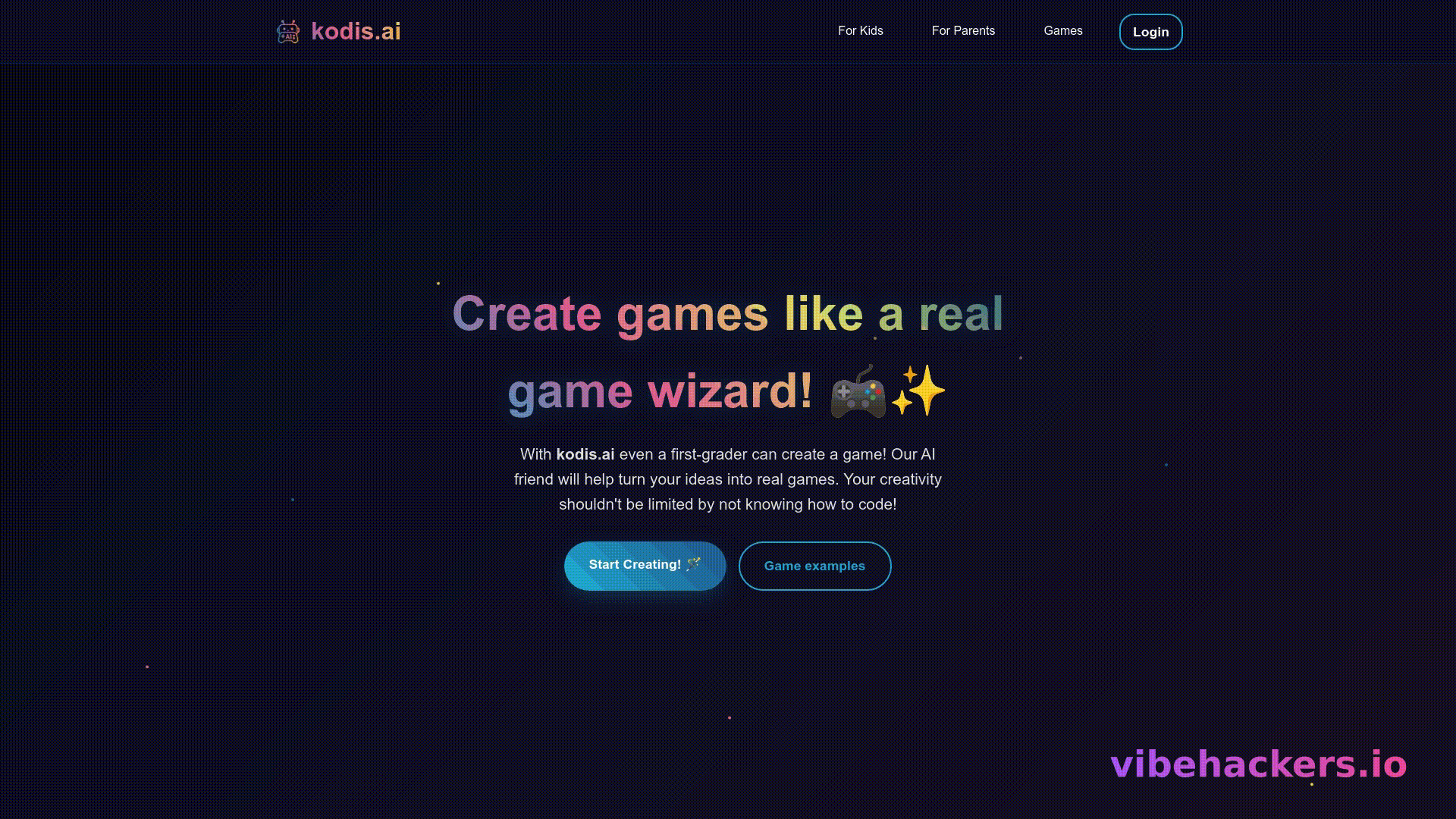 With kodis.ai even a first-grader can create a game! Our AI friend will help turn your ideas into real games. Your creativity shouldn't be limited by not knowing how to code!