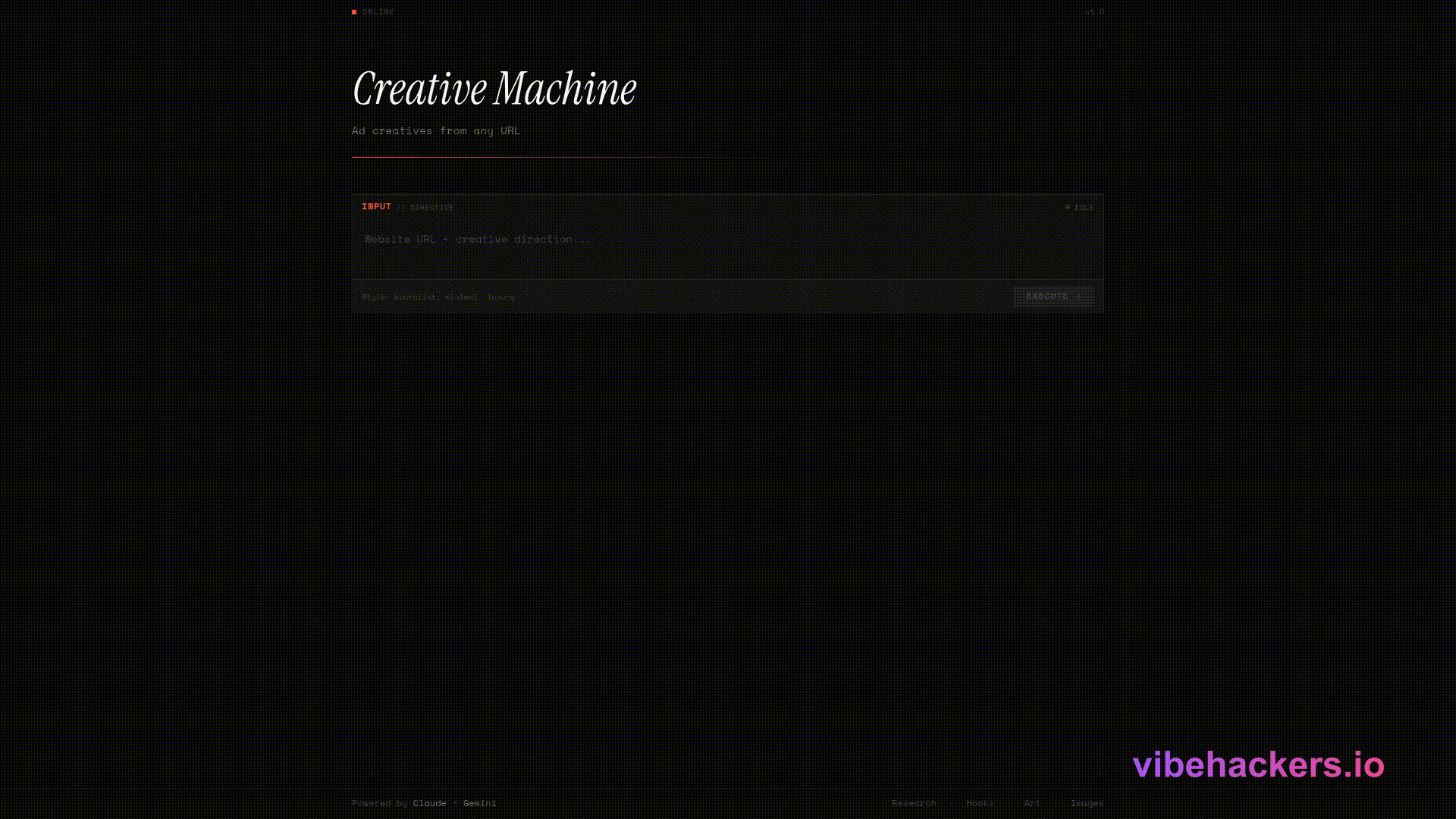 Generates ad creatives from a URL. This application is built to create ad creatives efficiently.