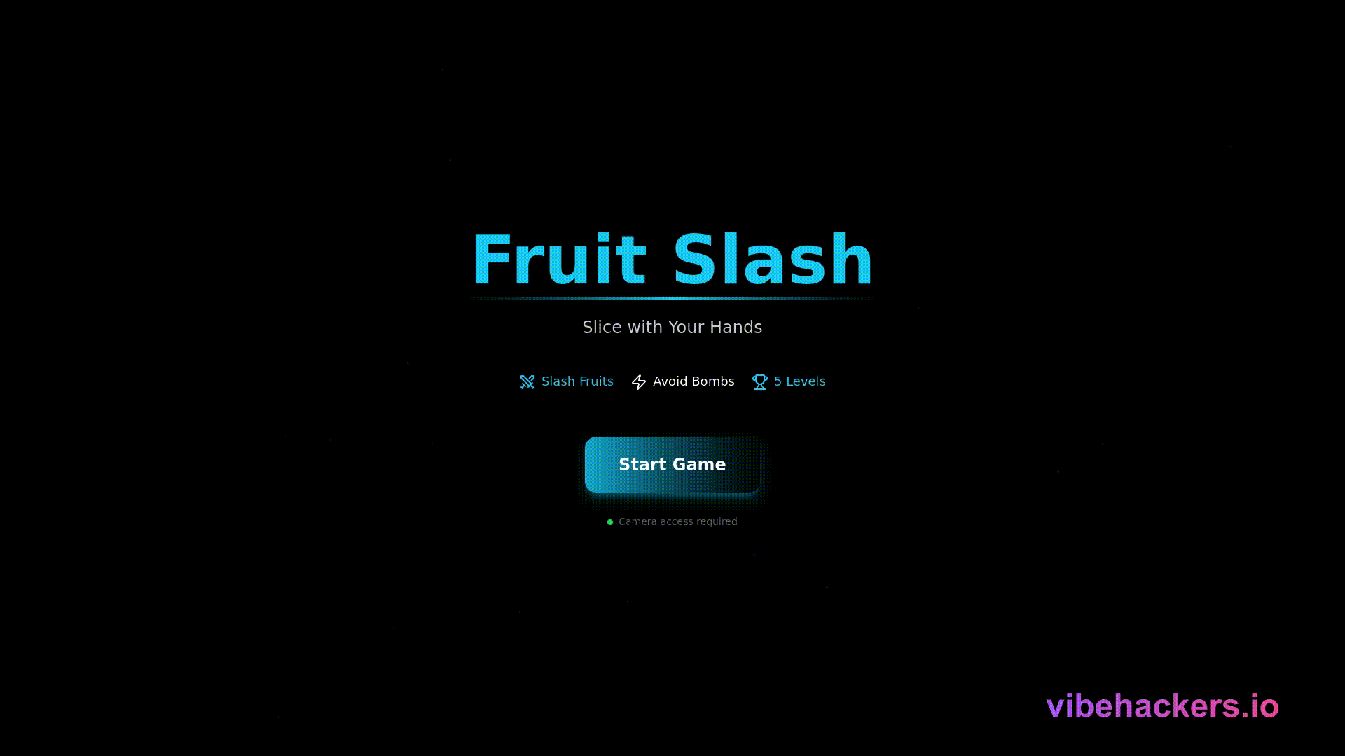 A browser-based hand tracking game where you slash fruits with your finger using your webcam. Avoid bombs, rack up combos, and master 5 intense levels!