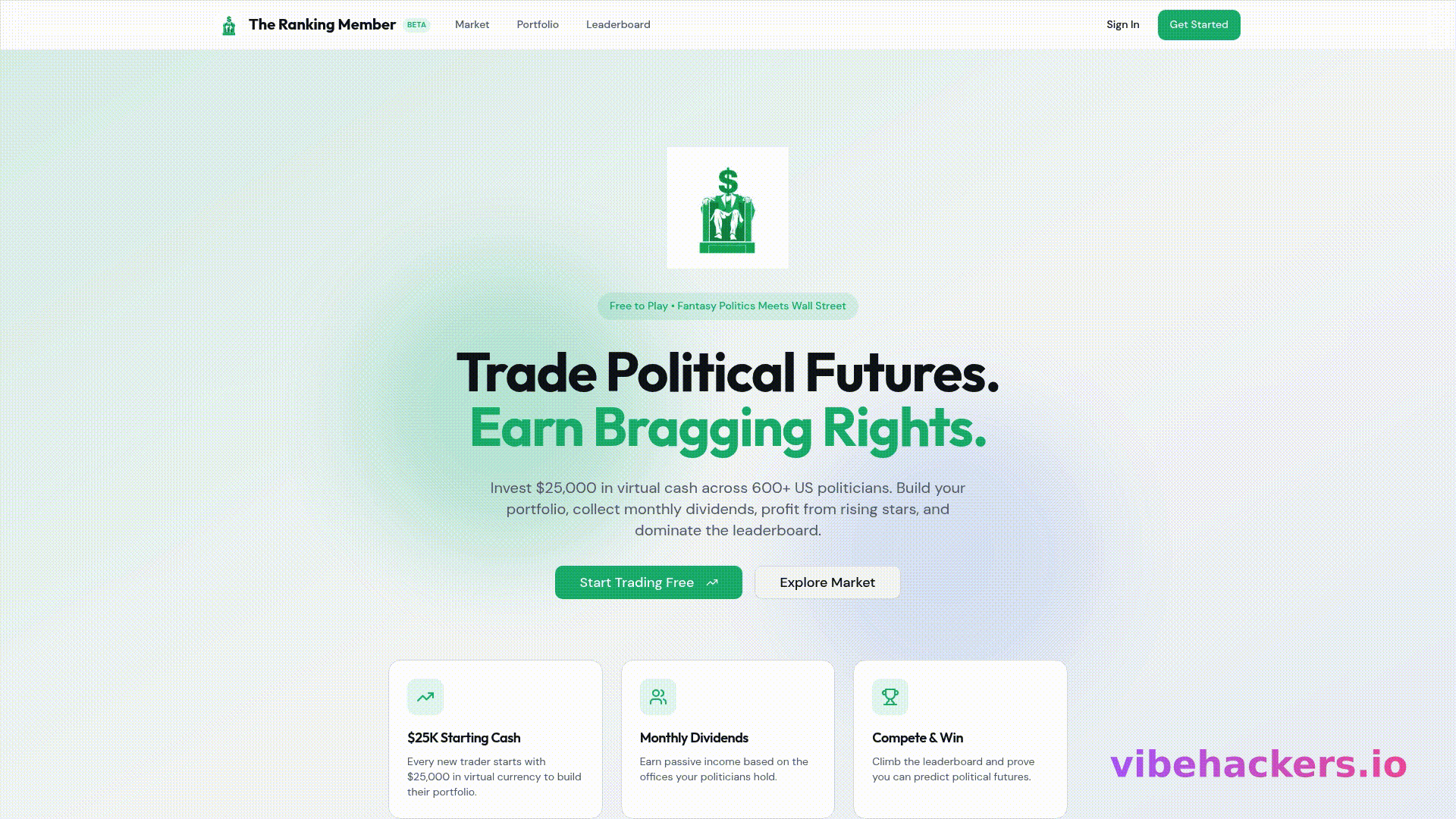 Fantasy Politics Meets Wall Street. Invest $25,000 in virtual cash across 600+ US politicians. Build your portfolio, collect monthly dividends, profit from rising stars, and dominate the leaderboard.