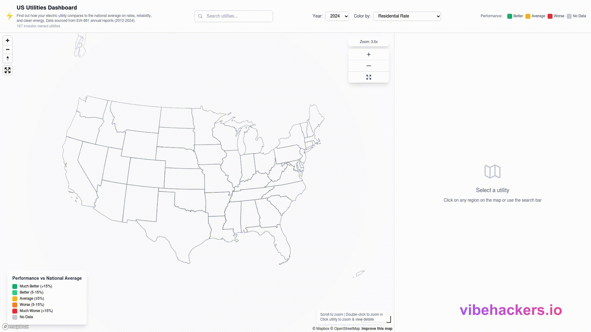 A dashboard that compares electric utility performance across the U.S.